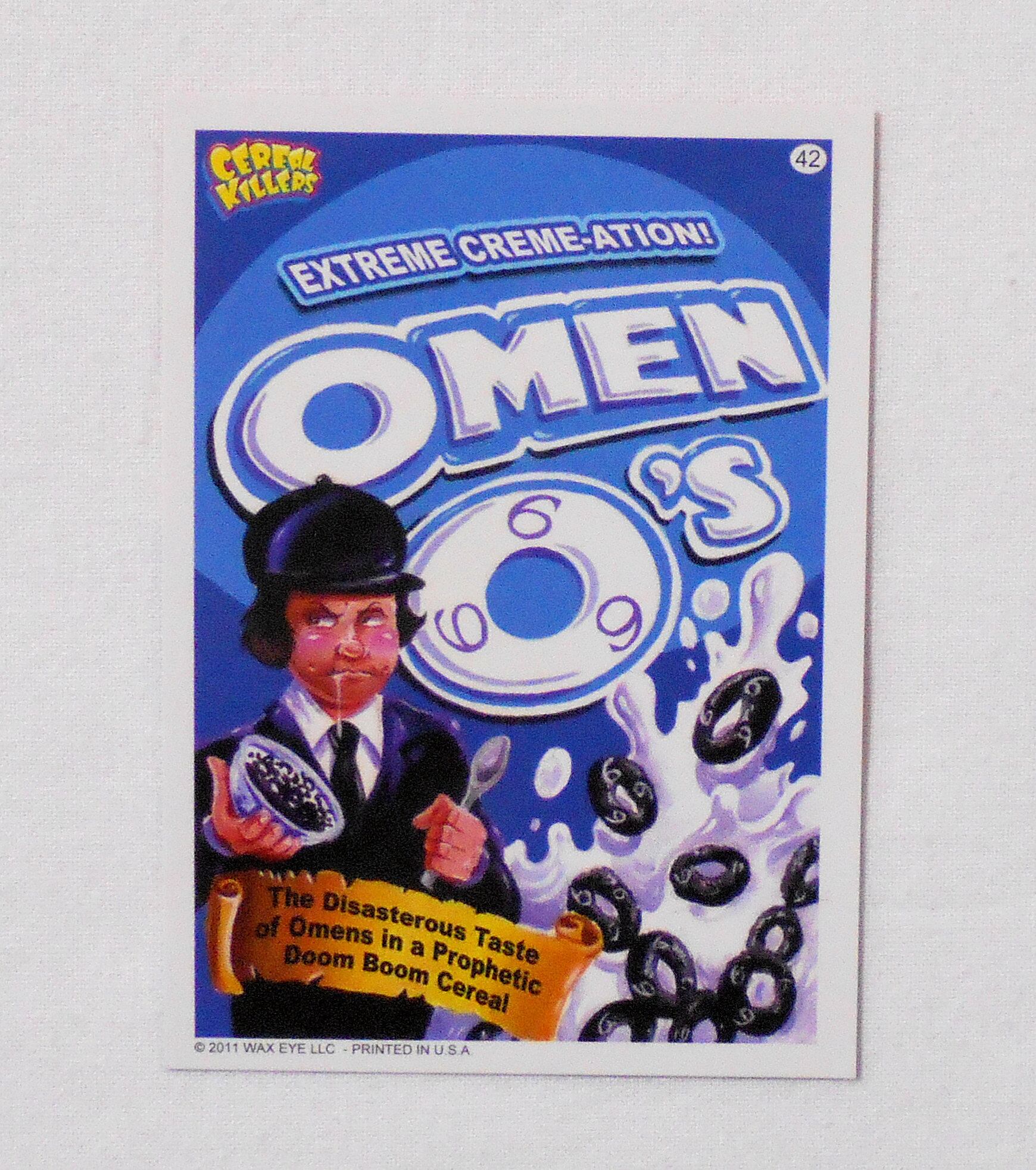 【NO.42 OMEN O'S [CEREAL KILLERS TRADING CARDS 1st SERIES]】◆ホラー映画『オーメン OMEN』と、ポストのシリアル"オレオオーズ OREO O'S"のパロディ◆大きさ約9×6.5センチ◆COPYRIGHT 2011 WAX EYE LLC ALL RIGHT RESERVED◆PRINTED IN USA