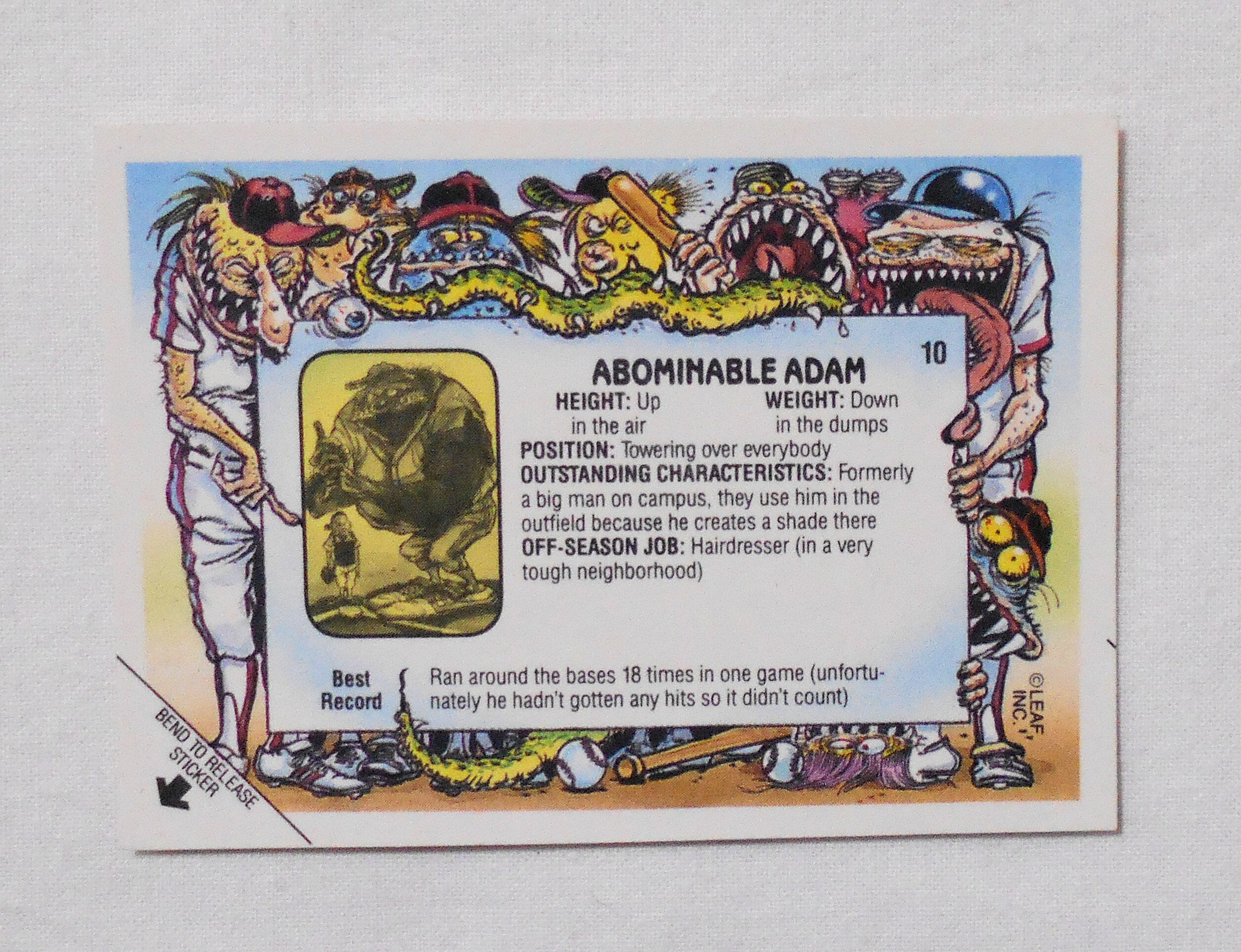 【NO.10-A ABOMINABLE ADAM [BASEBALLS GREATEST GROSS OUTS STICKERS & BUBBLE GUM]】 LEAF <1988年> トレーディングカード トレカ | LINUS' BLANKET COMIC SHOP
