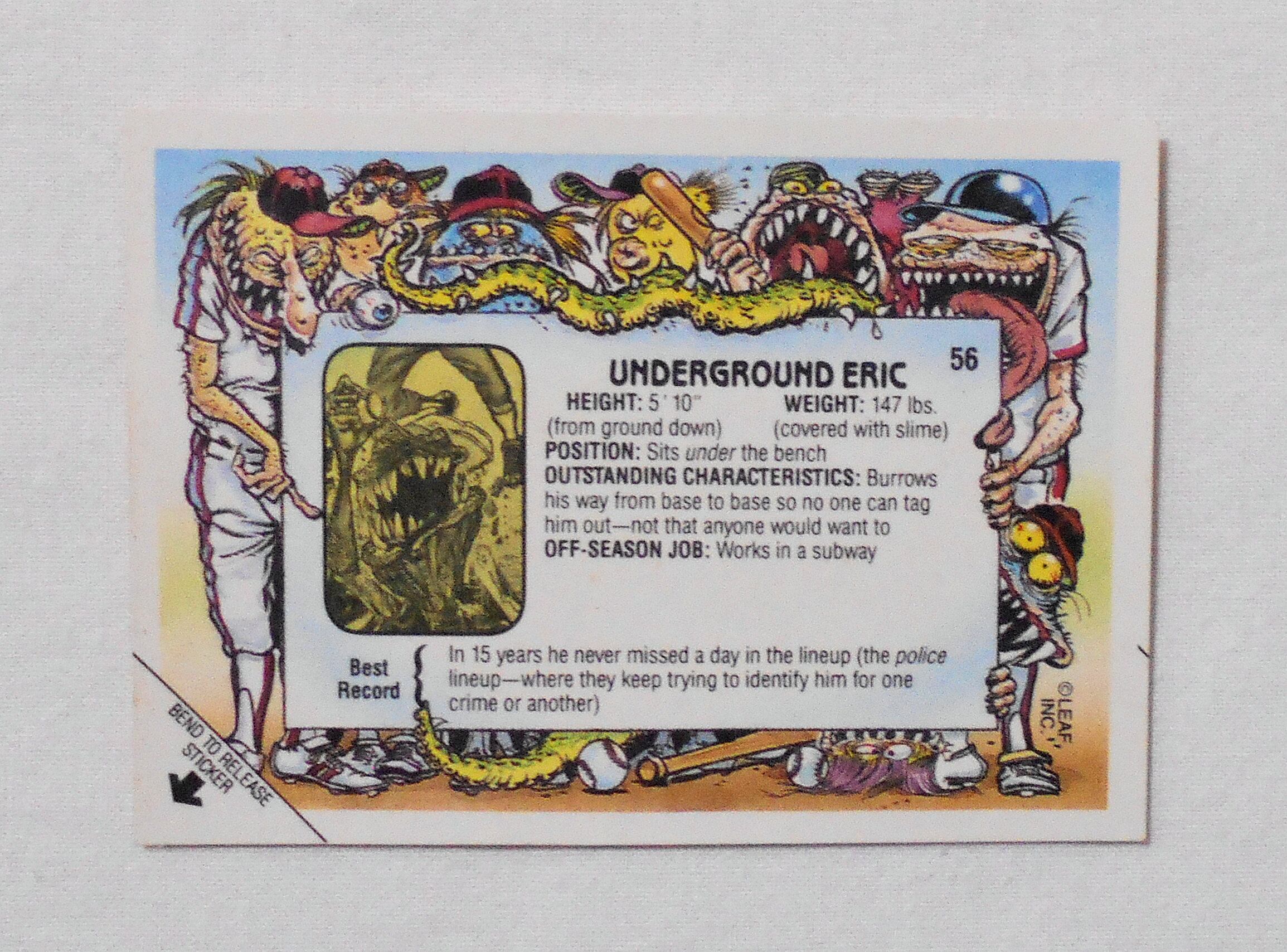 【NO.56-A UNDERGROUND ERIC [BASEBALLS GREATEST GROSS OUTS STICKERS & BUBBLE GUM]】 LEAF <1988年> トレーディングカード トレカ | LINUS' BLANKET COMIC SHOP