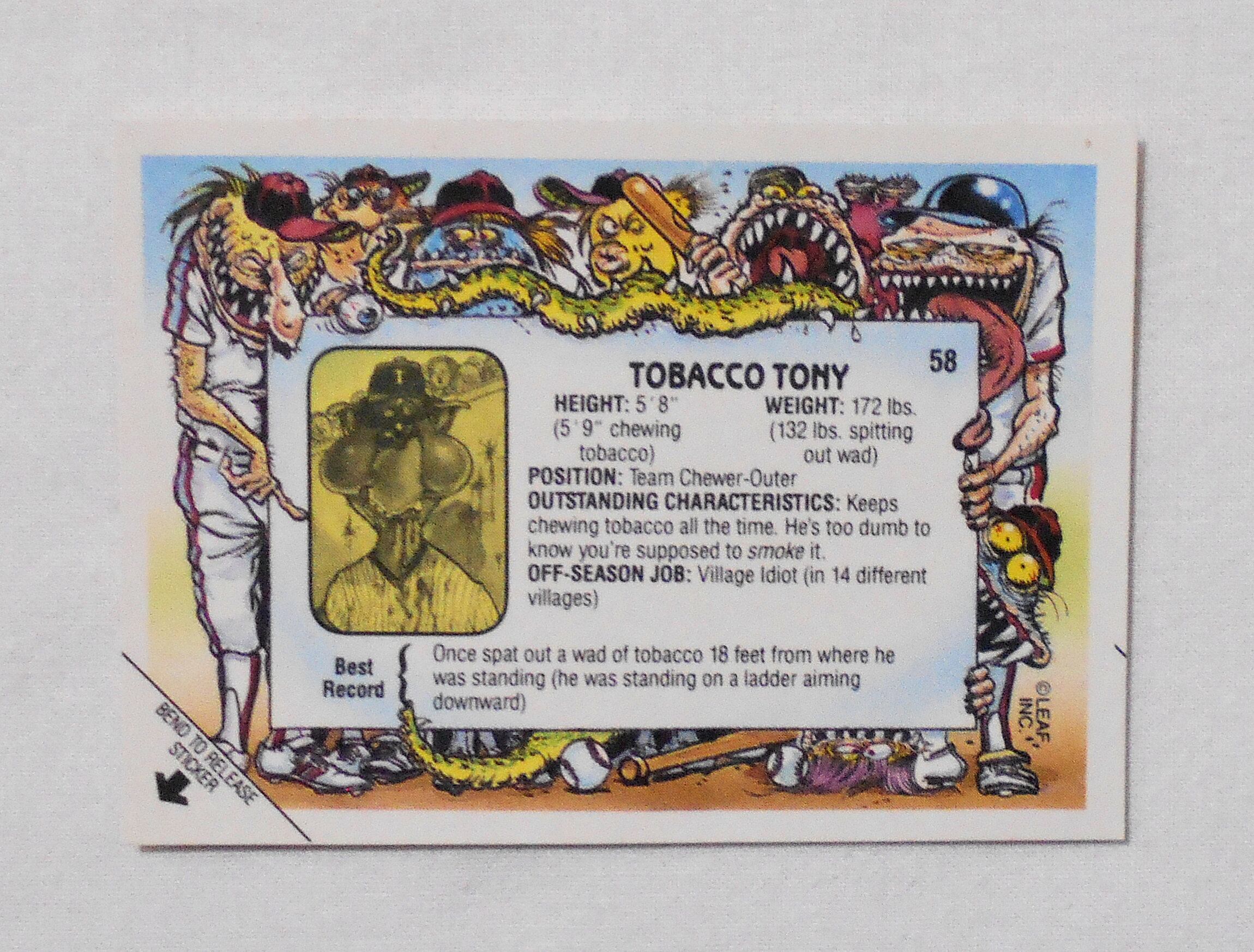 【NO.58-A TOBACCO TONY [BASEBALLS GREATEST GROSS OUTS STICKERS & BUBBLE GUM]】 LEAF <1988年> トレーディングカード トレカ | LINUS' BLANKET COMIC SHOP