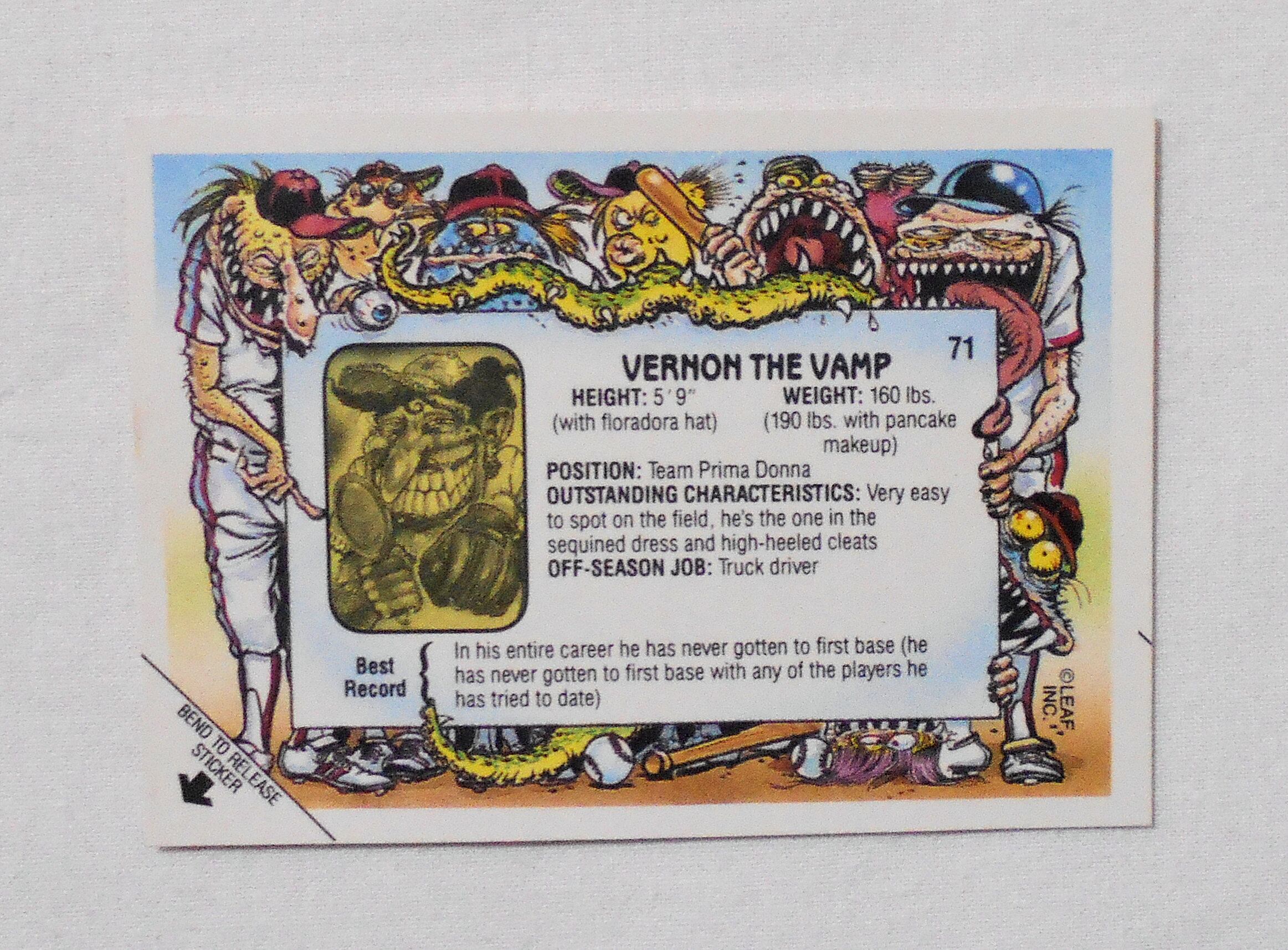 【NO.71-A VERNON THE VAMP [BASEBALLS GREATEST GROSS OUTS STICKERS & BUBBLE GUM]】 LEAF <1988年> トレーディングカード トレカ | LINUS' BLANKET COMIC SHOP