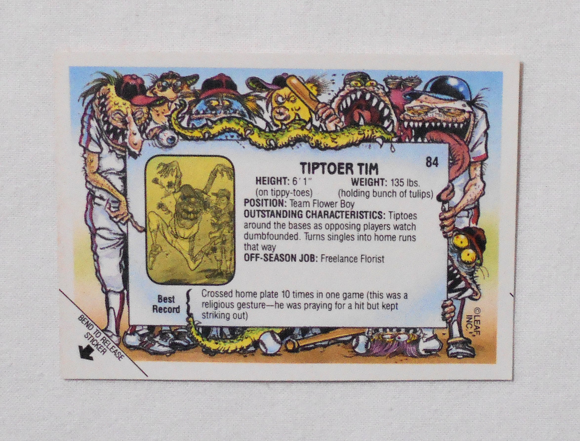 【NO.84-A TIPTOER TIM [BASEBALLS GREATEST GROSS OUTS STICKERS & BUBBLE GUM]】 LEAF <1988年> トレーディングカード トレカ | LINUS' BLANKET COMIC SHOP