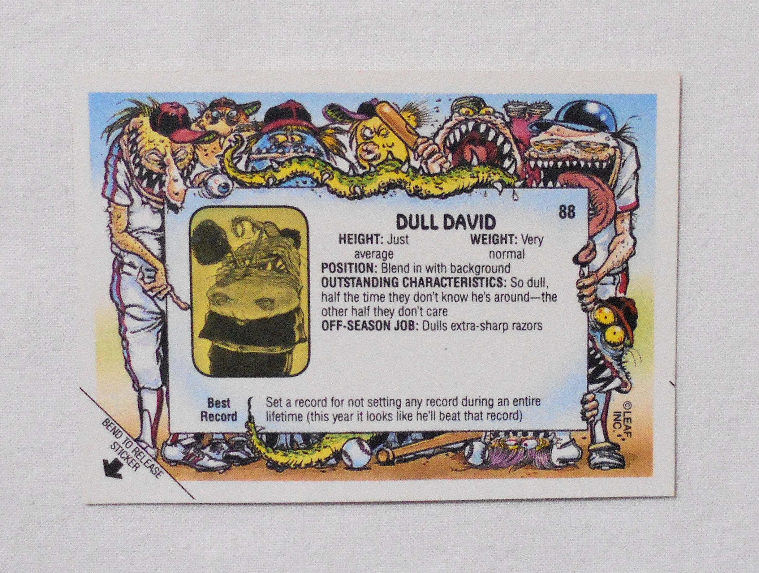 【NO.88-A DULL DAVID [BASEBALLS GREATEST GROSS OUTS STICKERS & BUBBLE GUM]】 LEAF <1988年> トレーディングカード トレカ | LINUS' BLANKET COMIC SHOP