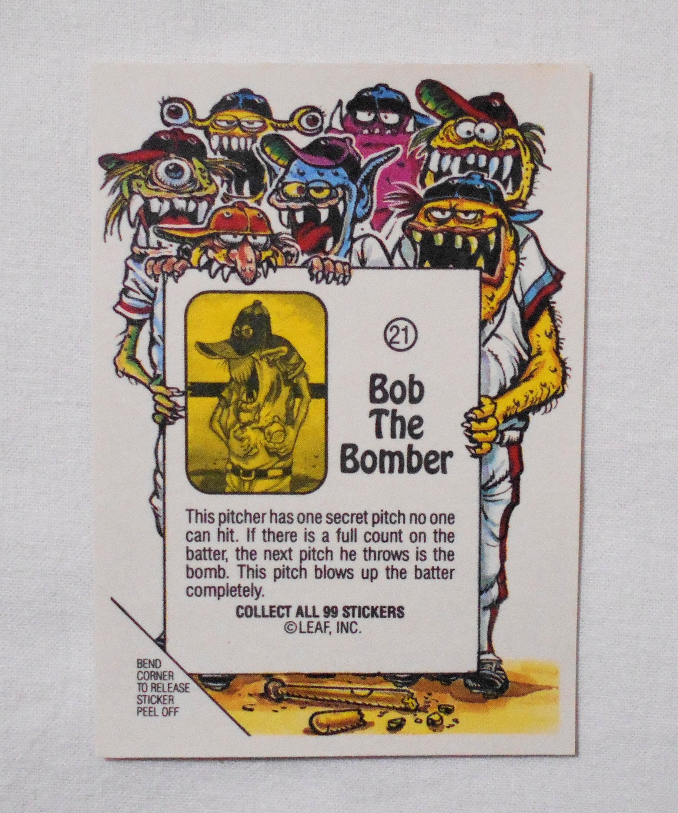 【NO.21-A BOB THE BOMBER [AWESOME ALL STARS BASEBALL STICKERS & BUBBLE GUM]】◆大きさ約9×6.5センチ◆COPYRIGHT LEAF INC.◆MADE & PRINTED IN USA◆カード裏は2種類、モンスターの説明をしているものと、全種集めれば1枚の大きなポスターになるものがあり、当店の在庫管理の都合上、タイトル欄に前者をA、後者をBとさせて頂いております。メーカー公式のものではございません。