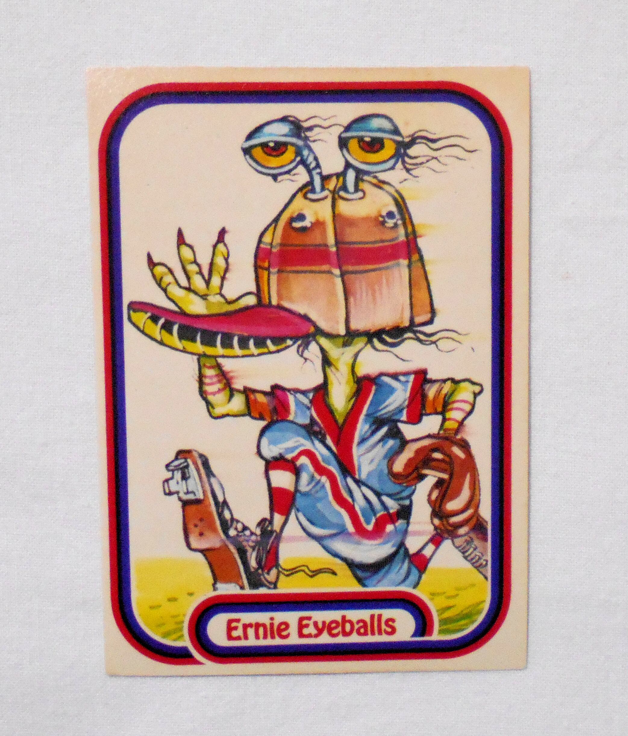 【NO.23-A ERNIE EYEBALLS [AWESOME ALL STARS BASEBALL STICKERS & BUBBLE GUM]】◆大きさ約9×6.5センチ◆COPYRIGHT LEAF INC.◆MADE & PRINTED IN USA◆カード裏は2種類、モンスターの説明をしているものと、全種集めれば1枚の大きなポスターになるものがあり、当店の在庫管理の都合上、タイトル欄に前者をA、後者をBとさせて頂いております。メーカー公式のものではございません。