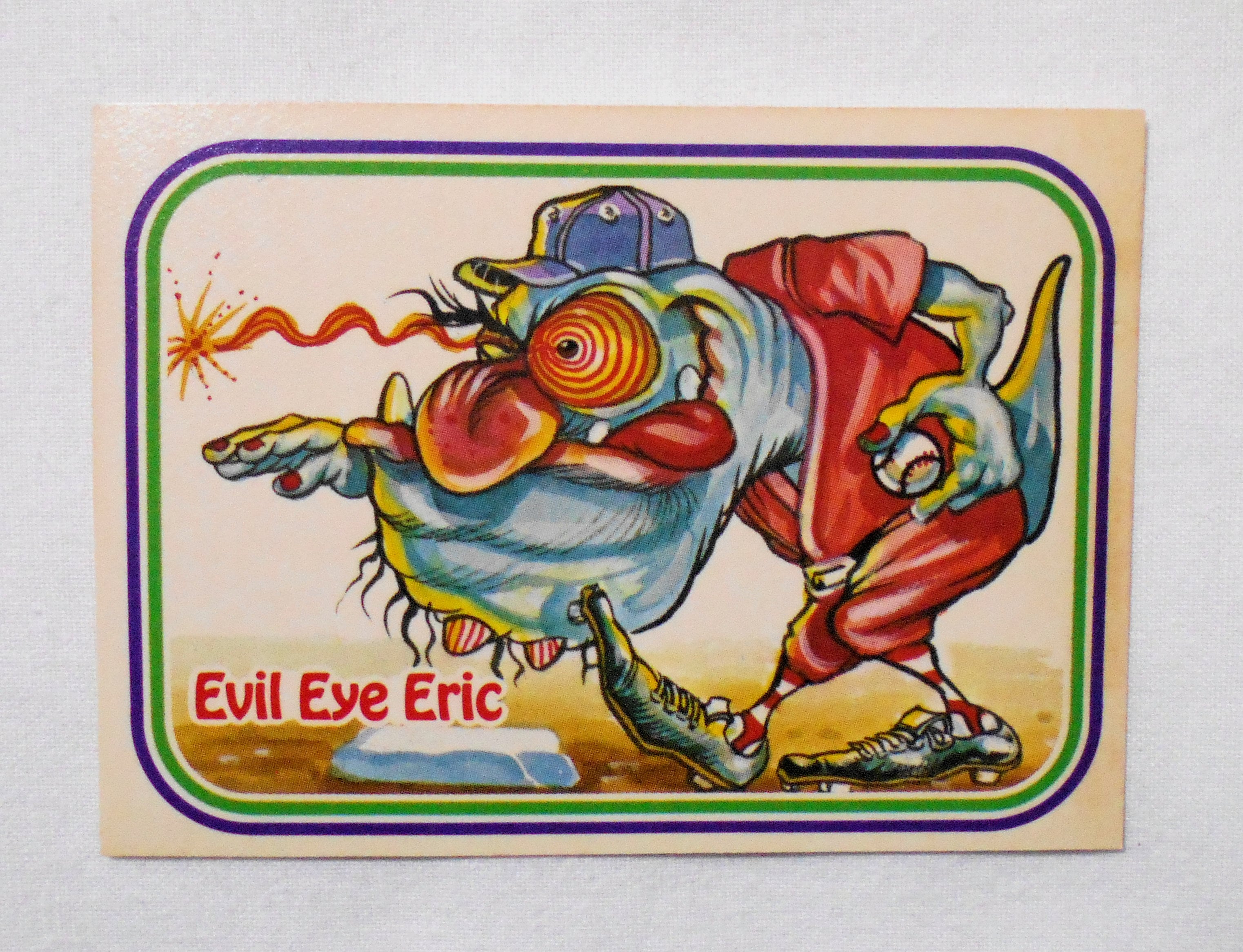 【NO.47-A EVIL EYE ERIC [AWESOME ALL STARS BASEBALL STICKERS & BUBBLE GUM]】◆大きさ約9×6.5センチ◆COPYRIGHT LEAF INC.◆MADE & PRINTED IN USA◆カード裏は2種類、モンスターの説明をしているものと、全種集めれば1枚の大きなポスターになるものがあり、当店の在庫管理の都合上、タイトル欄に前者をA、後者をBとさせて頂いております。メーカー公式のものではございません。