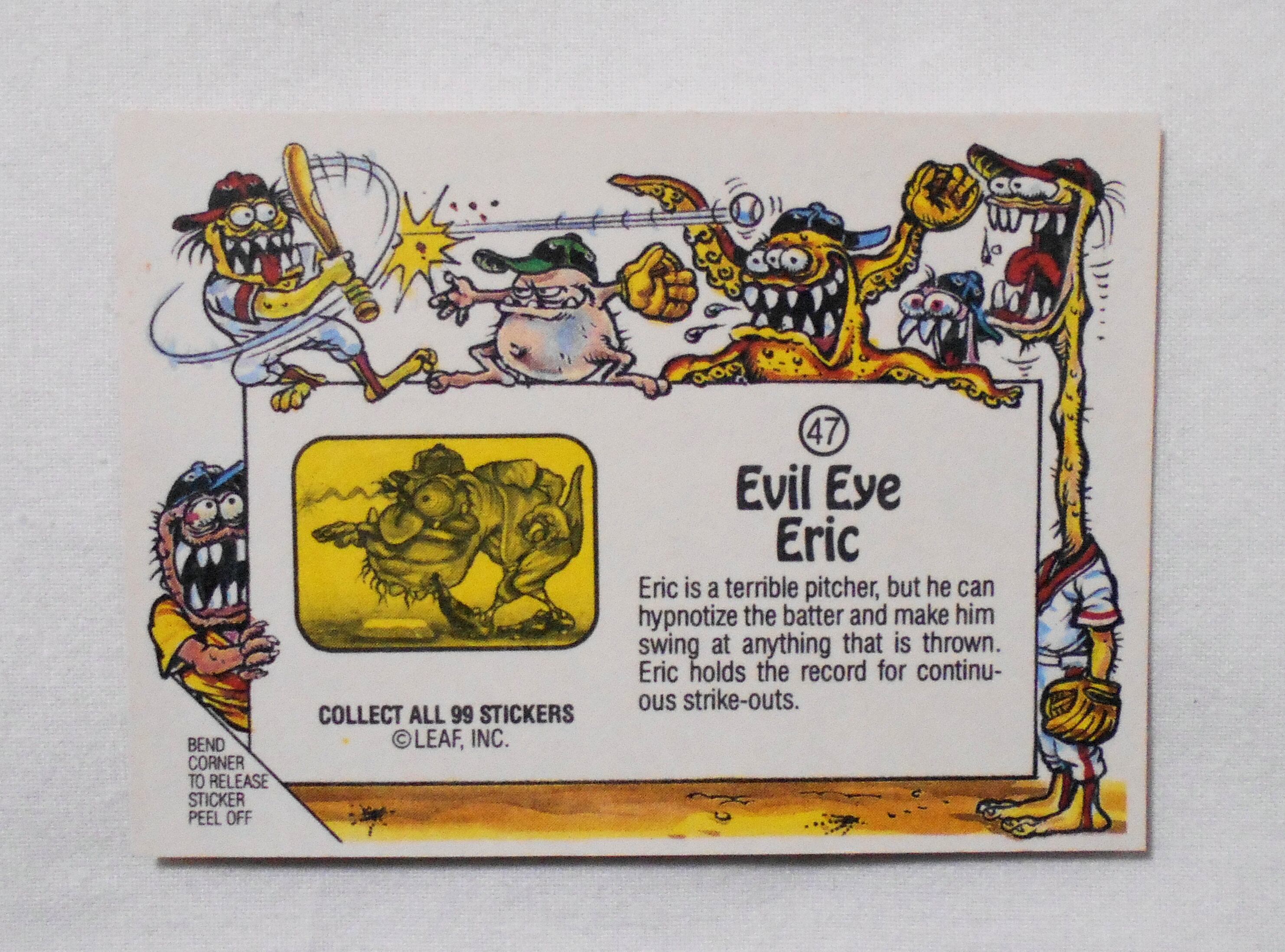 【NO.47-A EVIL EYE ERIC [AWESOME ALL STARS BASEBALL STICKERS & BUBBLE GUM]】 LEAF <1988年> トレーディングカード トレカ | LINUS' BLANKET COMIC SHOP