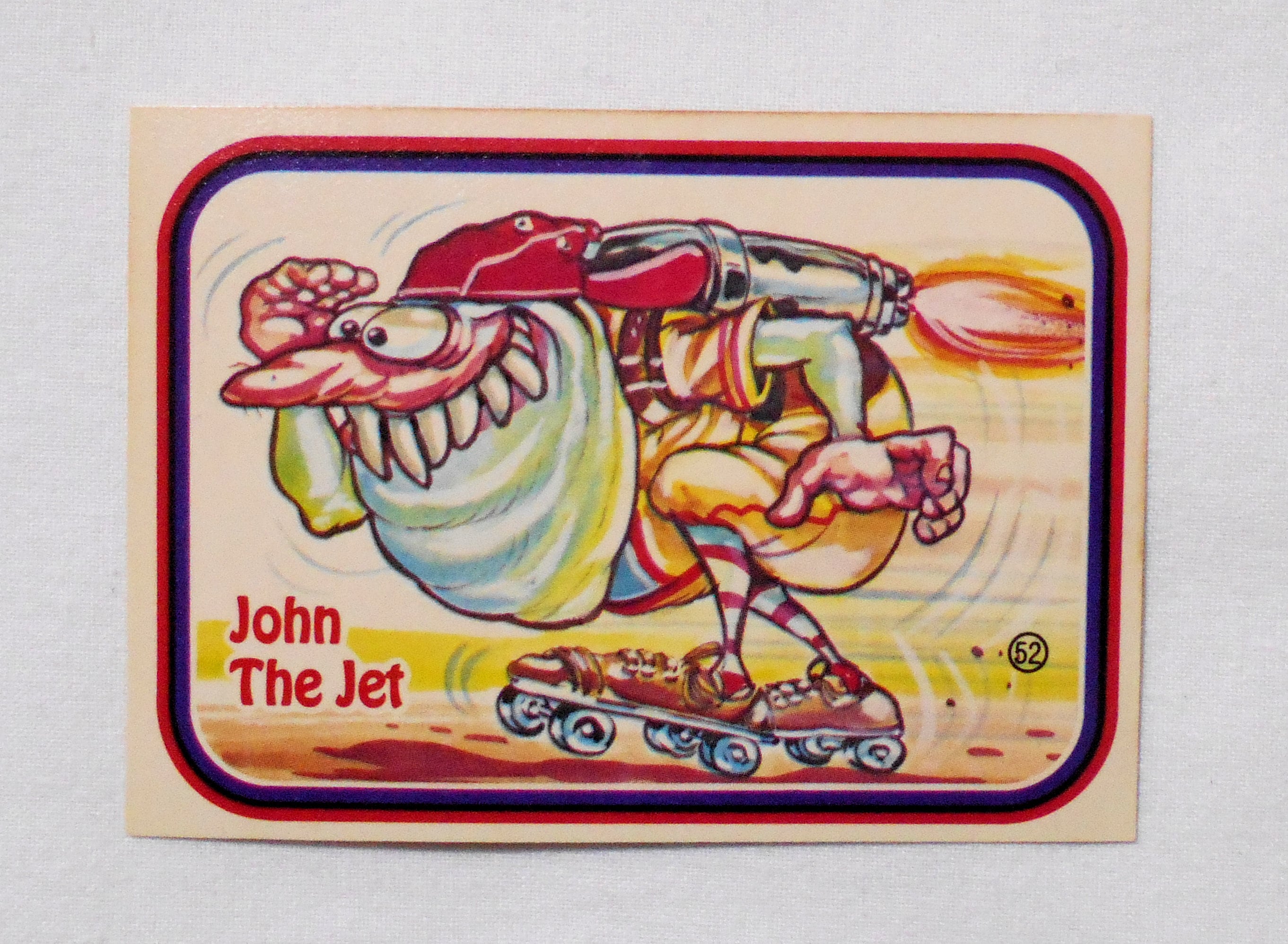 【NO.52-B JOHN THE JET [AWESOME ALL STARS BASEBALL STICKERS & BUBBLE GUM]】◆大きさ約9×6.5センチ◆COPYRIGHT LEAF INC.◆MADE & PRINTED IN USA◆カード裏は2種類、モンスターの説明をしているものと、全種集めれば1枚の大きなポスターになるものがあり、当店の在庫管理の都合上、タイトル欄に前者をA、後者をBとさせて頂いております。メーカー公式のものではございません。