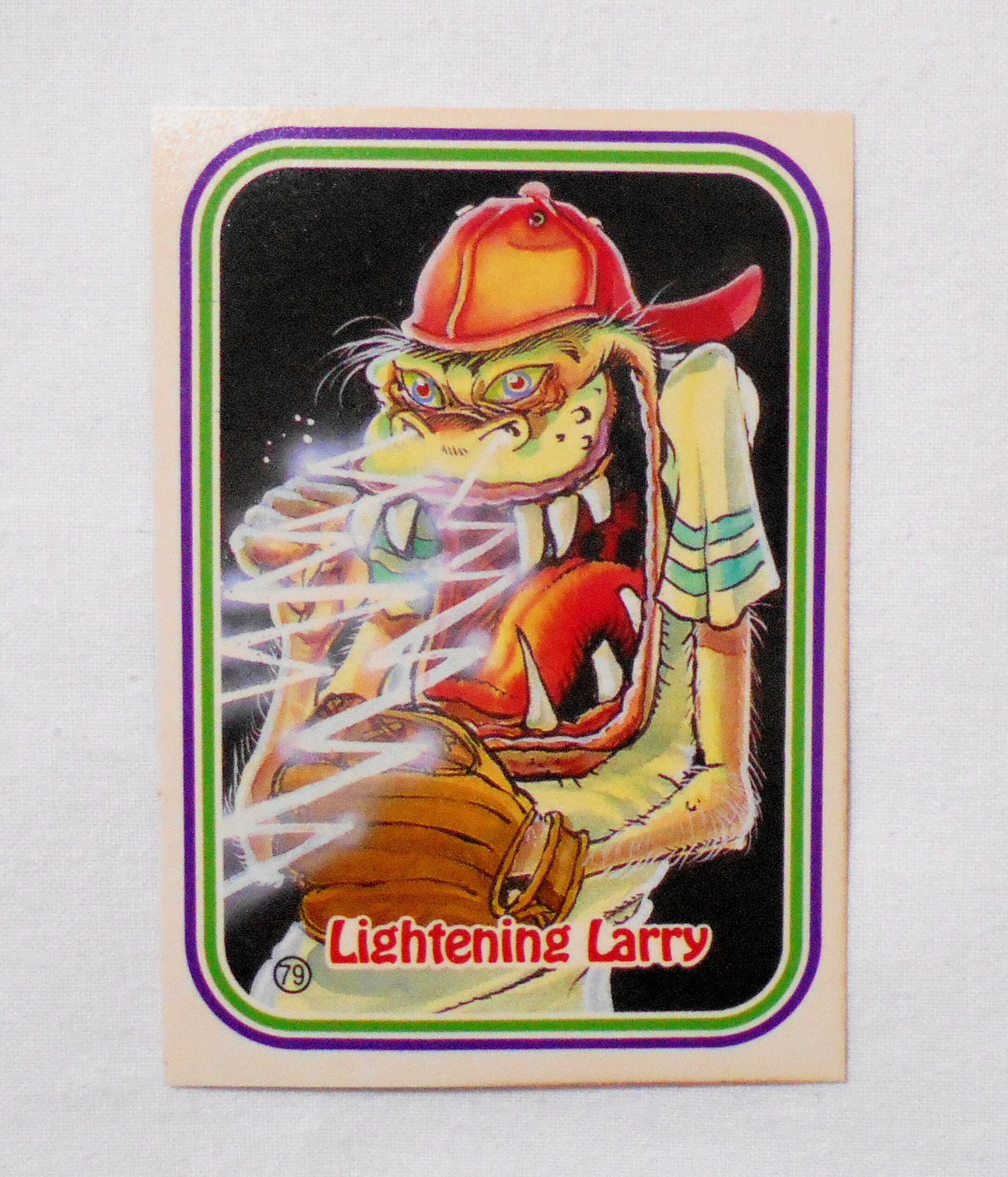 【NO.79-B LIGHTENING LARRY [AWESOME ALL STARS BASEBALL STICKERS & BUBBLE GUM]】◆大きさ約9×6.5センチ◆COPYRIGHT LEAF INC.◆MADE & PRINTED IN USA◆カード裏は2種類、モンスターの説明をしているものと、全種集めれば1枚の大きなポスターになるものがあり、当店の在庫管理の都合上、タイトル欄に前者をA、後者をBとさせて頂いております。メーカー公式のものではございません。