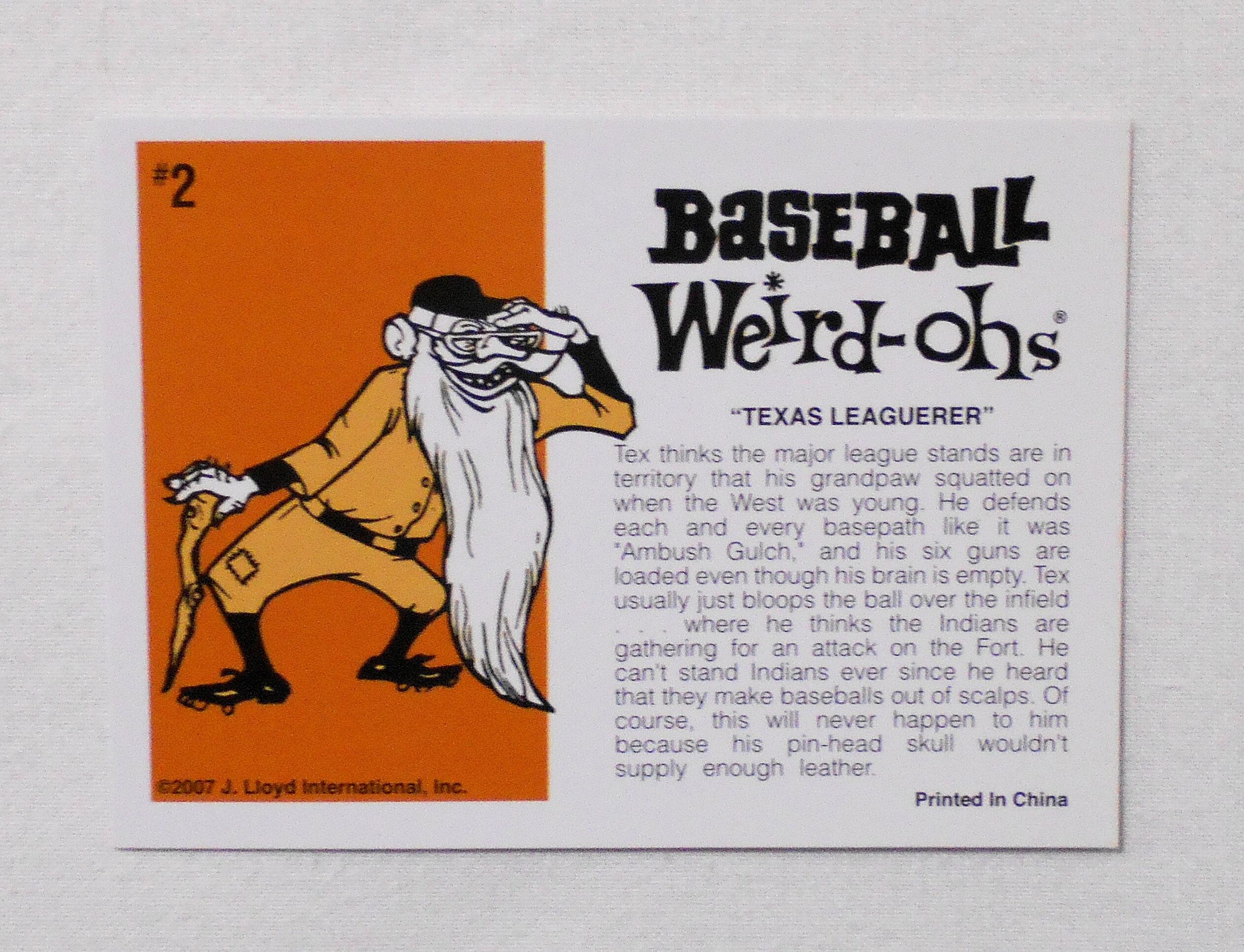 【NO.2 TEXAS LEAGUERER [WEIRD-OHS BASEBALL CARDS]】◆大きさ約9×6.5センチ◆COPYRIGHT 2007 J. LLOYD INTERNATIONAL, INC.◆HAWK MODEL COMPANY◆PRINTED IN CHINA◆2007年にリリースされた復刻盤です(オリジナルは1960年代)。