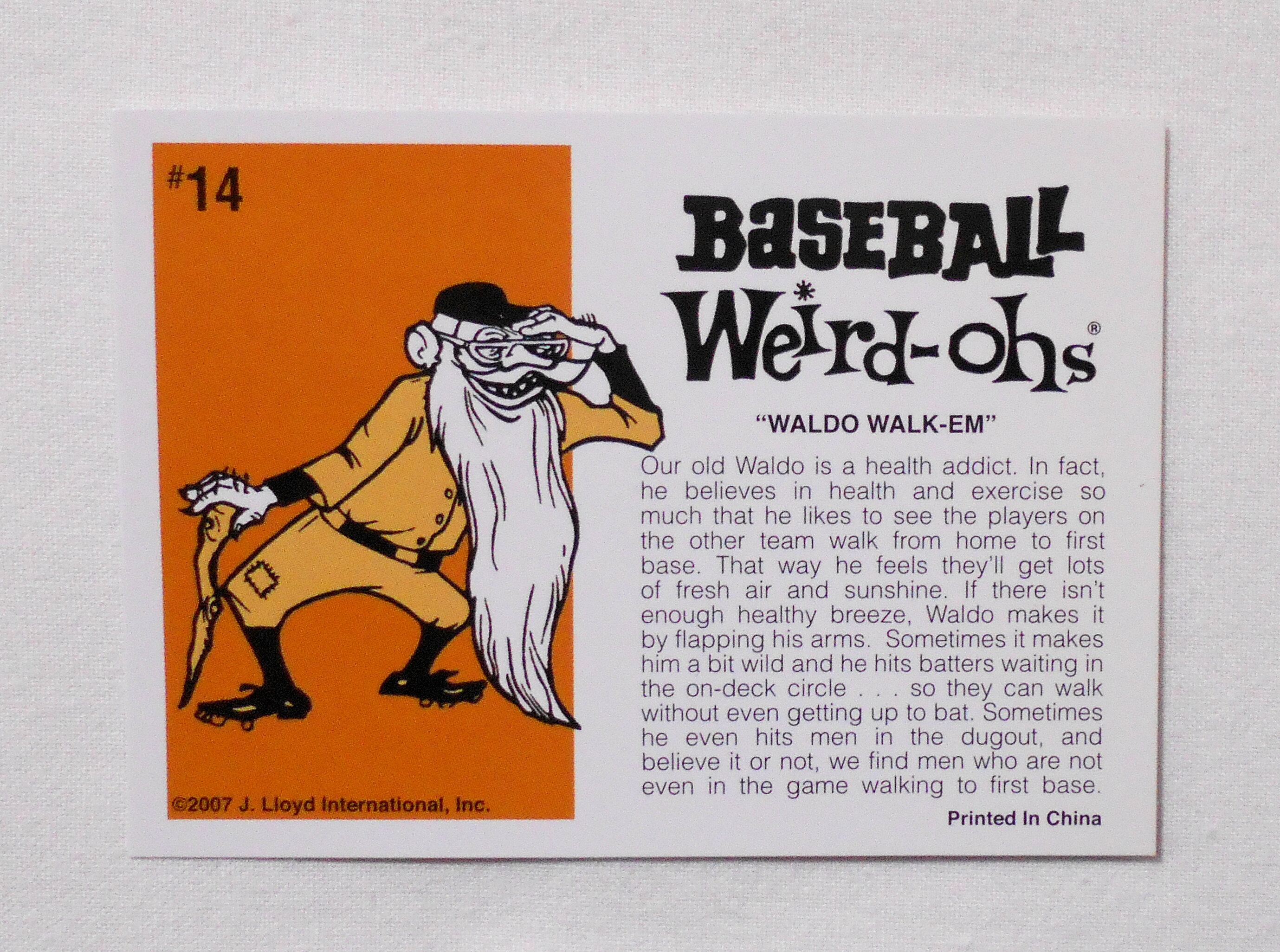 【NO.14 WALDO WALK-EM [WEIRD-OHS BASEBALL CARDS]】◆大きさ約9×6.5センチ◆COPYRIGHT 2007 J. LLOYD INTERNATIONAL, INC.◆HAWK MODEL COMPANY◆PRINTED IN CHINA◆2007年にリリースされた復刻盤です(オリジナルは1960年代)。