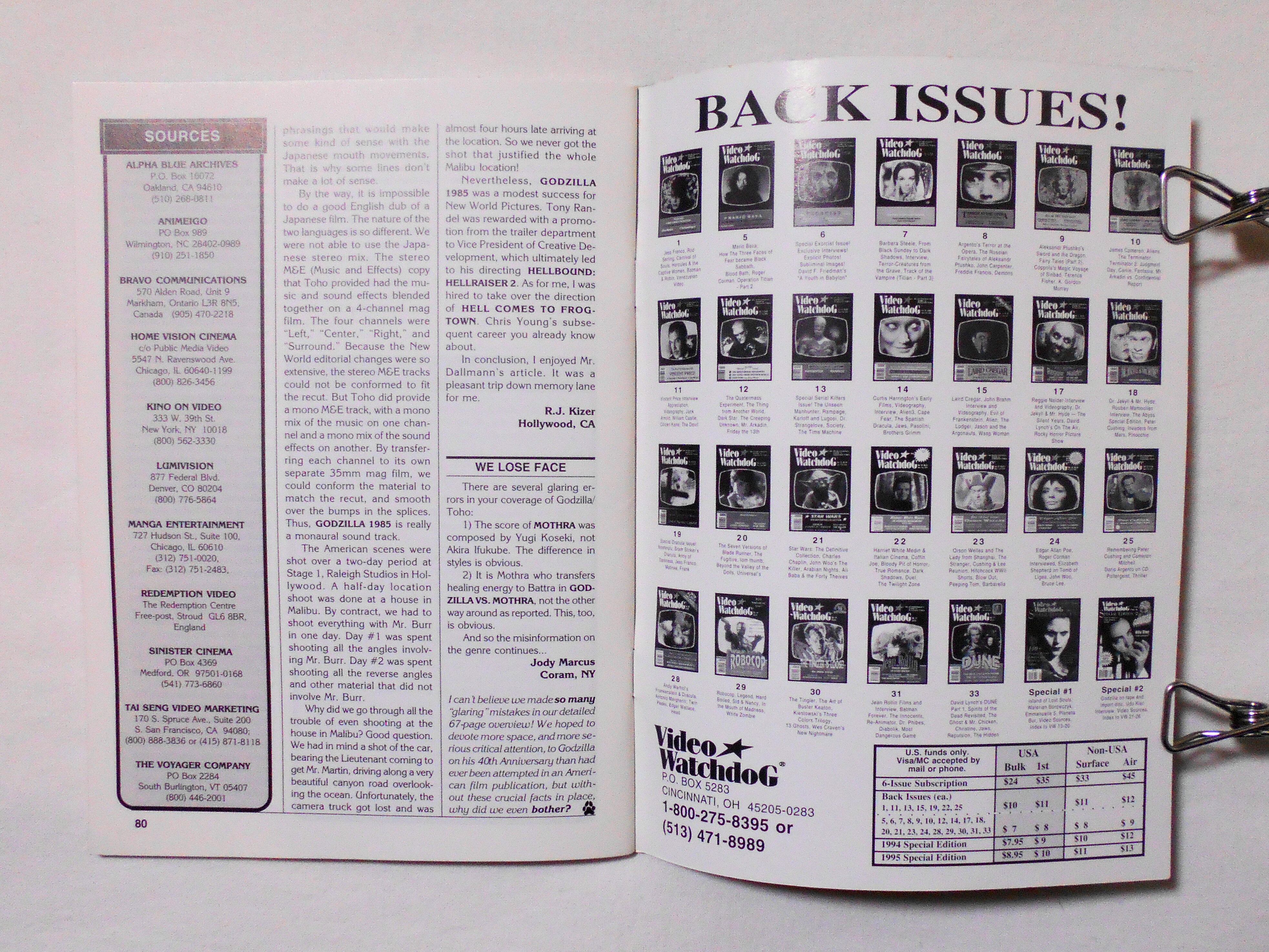 【VIDEO WATCHDOG】 NO.34 1996 - CLIVE BARKER - LORD OF ILLUSIONS - HELLRAISER / DUNE - THE MISSING SCENES etc | LINUS' BLANKET COMIC SHOP