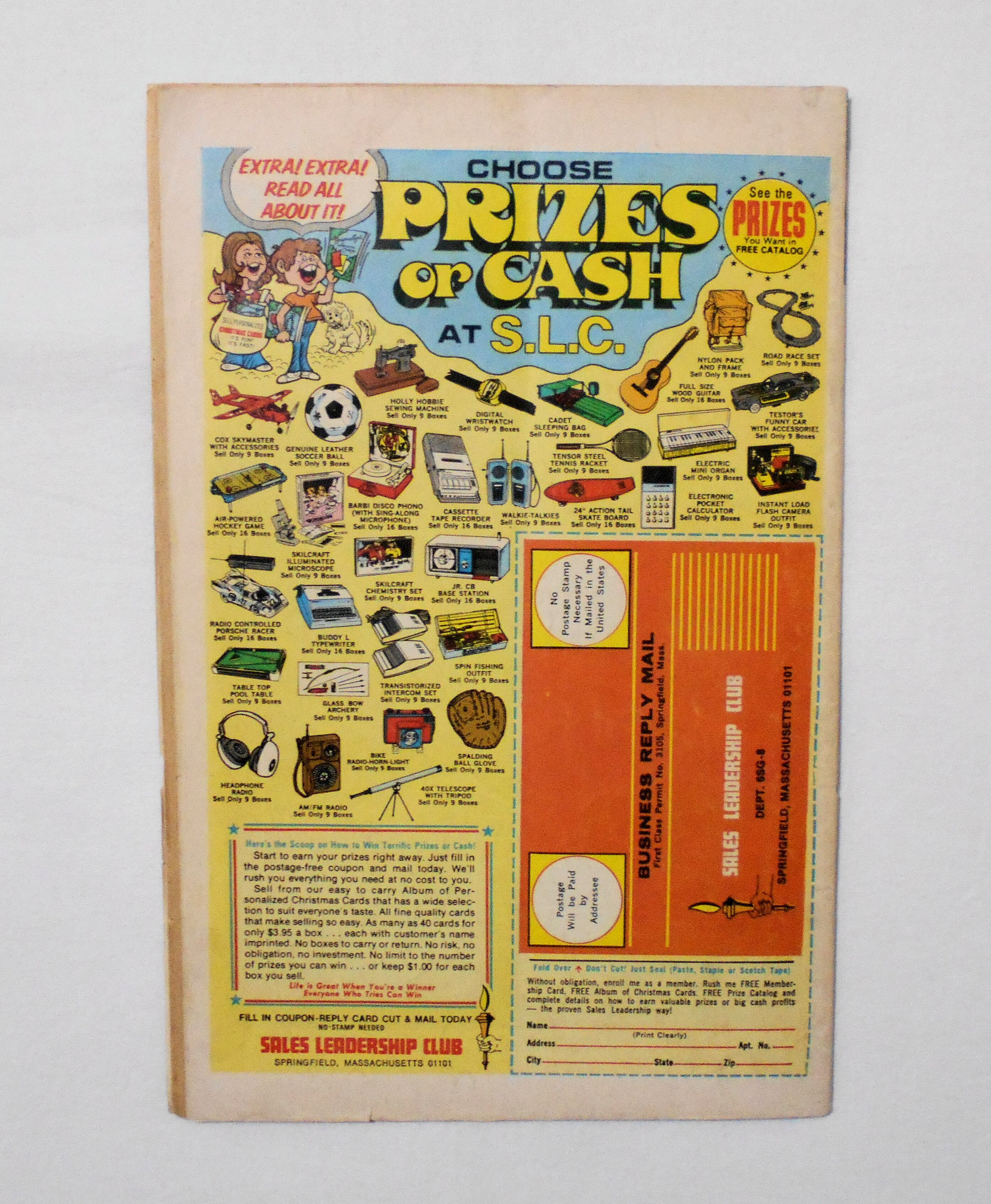 中央見開きページの下ホッチキス部分が本体から外れています。他、多少の擦れやシワ、黄ばみ、角の傷みや折れ、微破れ等があり、経年に伴う使用感は多少強めと言えますが、1970年代の輸入中古コミックですので、その点を考慮頂ければと思います。中は黄ばんでいますが、目立った汚れやシミ等はなく、おおむねきれいな状態ですので、読むのに支障はございません。新品同様の美品をお求めの方や、中古品にご理解を頂けない方にお薦めは出来ません。