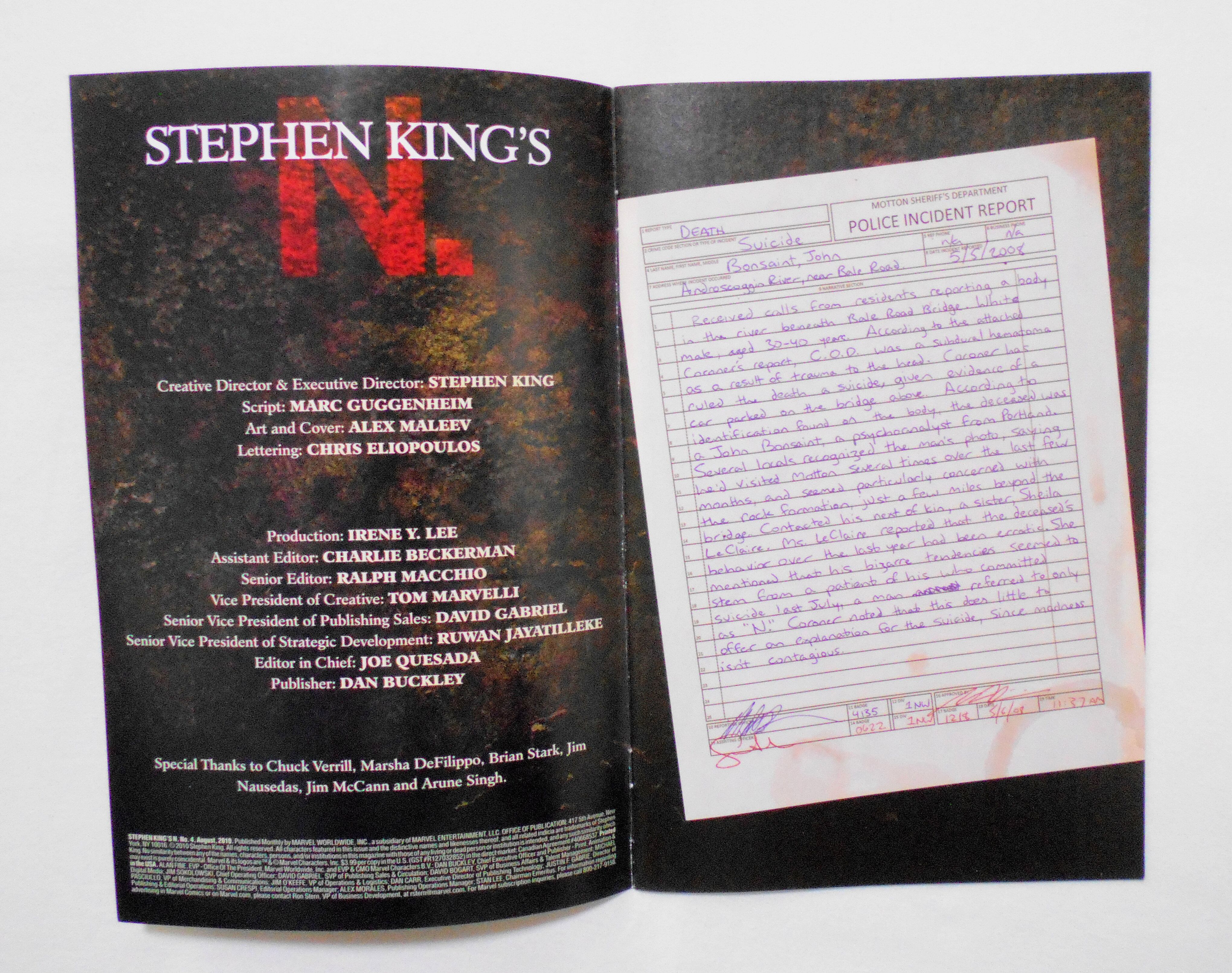 【STEPHEN KING'S N】 NO.4 (of 4) AUG. 2010◆incl. STEPHEN KING'S N ISSUE 4 SCRIPTBOOK◆中古アメリカン・コミック。英文表記の洋書となります。◆32ページ カラー 大きさ約26×17センチ◆MARVEL WORLDWIDE, INC.