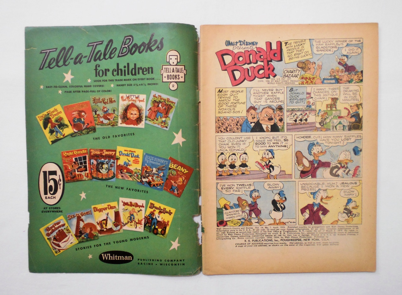 【WALT DISNEY'S COMICS AND STORIES】 VOL.14 NO.7 APRIL 1954◆中古アメリカン・コミック。英文表記の洋書となります。◆48ページ(表紙に記載の52ページは表紙~裏表紙を含めてです) フルカラー 大きさ約26×18.5センチ◆K.K. PUBLICATIONS, INC.◆COPYRIGHT 1954 by WALT DISNEY PRODUCTIONS.◆WESTERN PRINTING AND LITHOGRAPHING COMPANY